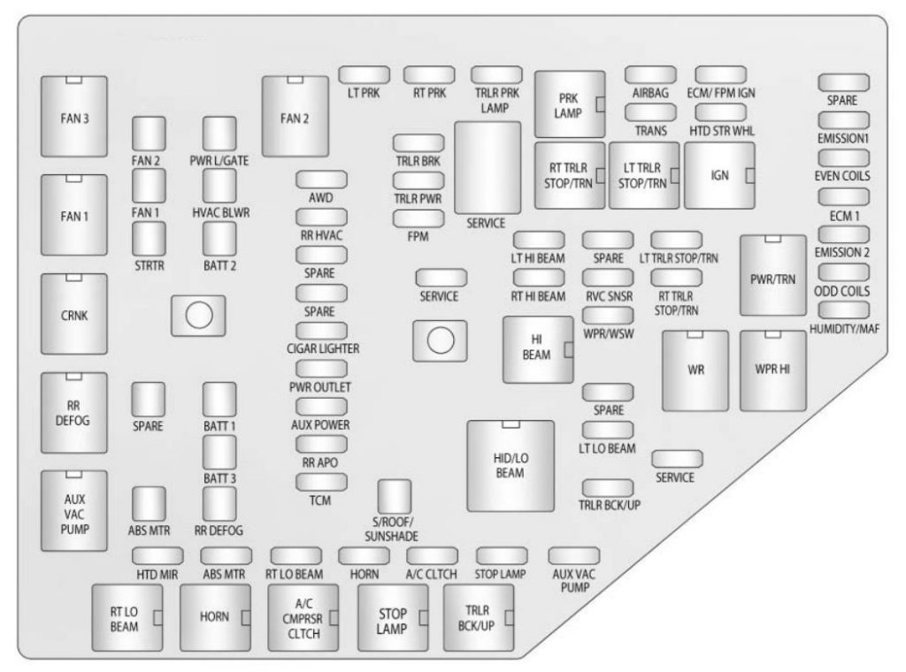 colorado fuse box diagram 2006 2007 chevrolet 2004 location hood under relay abbreviations wheel rear fuses compartment engine